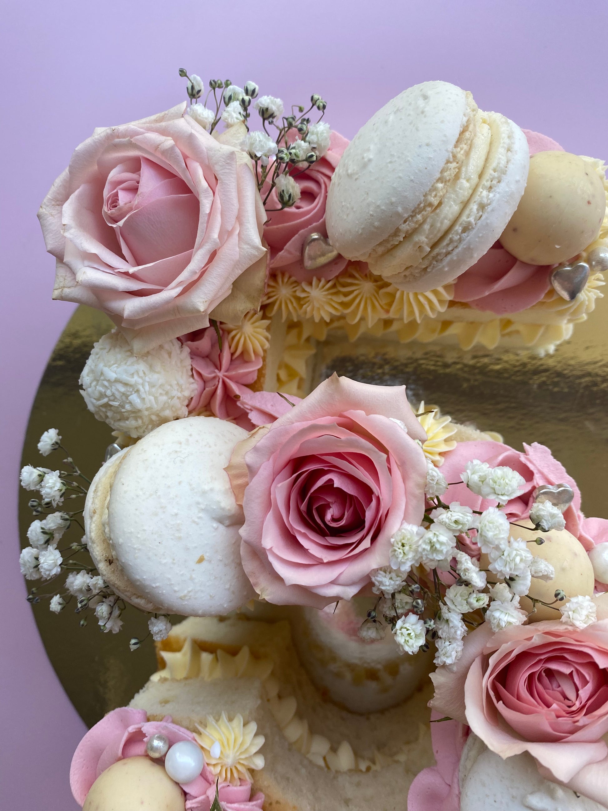 Each number or letter serves approx. 15 people. Choose your number or letter, perfect for milestone birthdays and anniversaries. Made with two layers of cake, approximately 30cm in length, filled with buttercream icing. Colour theme is customisable, send through 2 selected colours in the notes if you would like to change it (2 colours only)